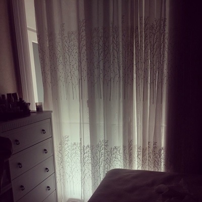 굿모닝 오늘도 어김없이 아슬아슬 6시간 더 자려구 밖에 #암막커튼 3분의2정도 내렸더니 조금 세어들어온 #빛 내 얼굴엔 심한 #다크써클 배고푸다 밥묵자 グッモーニン。今日も間違いなくギリギリ6時間。さらに寝ようと、外に暗幕カーテンを3分の2程度おろしたところ。少し数えて入ってきた光。私の顔にはひどい目のクマ。お腹すいた。ご飯食べよ。