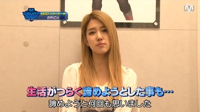 120409 スターサーチ ★ SPICA 2014年06月03日 (0) | Edit 新しい情報が入ってこないので過去の映像を。笑 新人歌手に密着!のコーナー! 若かりし頃(?)のSPICAをご覧くださいませ。笑 【Part. 1】 120409 SPICA @ M countdown Star Search (1_2) 投稿者 hvsraw 【Part. 2】 120409 SPICA @ M countdown Star Search (2_2) 投稿者 hvsraw それぞれの苦労話&長い下積み時代話。 ここのくだり、切なくなりました。。 本当に苦労してるメンバーたちなので、グッときます。 思わず泣いちゃう じゅひょん。おんおん(T_T) スピカ、ファイティン!!! [1回]